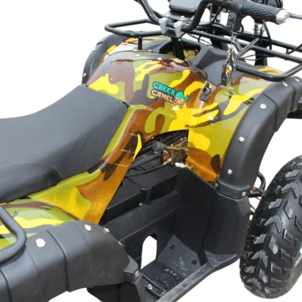 На квадроцикл GreenCamel Caxapa A4000 устанавливается сигнализация для лучшей безопасности. LED спидометр, с которым ваш ребенок сможет контролировать скорость на грунтовых дорогах и не преувеличить с ручкой подачи газа. Багажник спереди и сзади, на который можно положить вещи, трос, лебедки для большей уверенности в лесных тропах. Квадроцикл оборудован фаркопом.