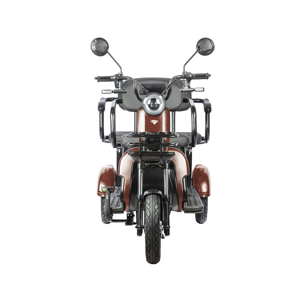 Модель оснащена пассажирским широким местом, имеющим удобную спинку и подлокотники. Тестирование техники доказало удобство передвижения и отсутствие усталости. Технические характеристики юркого трицикла представлены двигателем мощностью 800 Вт, способного развивать скорость до 25 км/час и преодолевать 45 км пути.  Контроль и безопасность трицикла обеспечены информационным дисплеем, предоставляющим данные о скоростных характеристиках и заряде батареи.