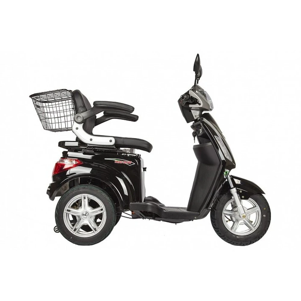Скоростные характеристики трицикла достаточно приличные и безопасные. При мощности двигателя 1000 Вт и емкой АКБ электроскутер способен при максимальной скорость 30 км/час и на одной подзарядке преодолевать до 50 км пути.