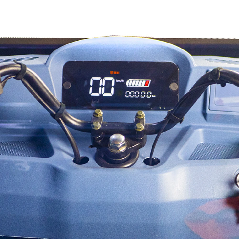 С грузоподъёмностью до 750 кг и прочной рамой он уверенно справляется с перевозкой паллет, ящиков, бочек и строительных материалов. Задний привод и двигатель на 1000 Вт обеспечивают уверенное движение даже при полной загрузке. А благодаря пробегу до 80 км на одном заряде вы сможете весь рабочий день перемещать грузы без подзарядки.