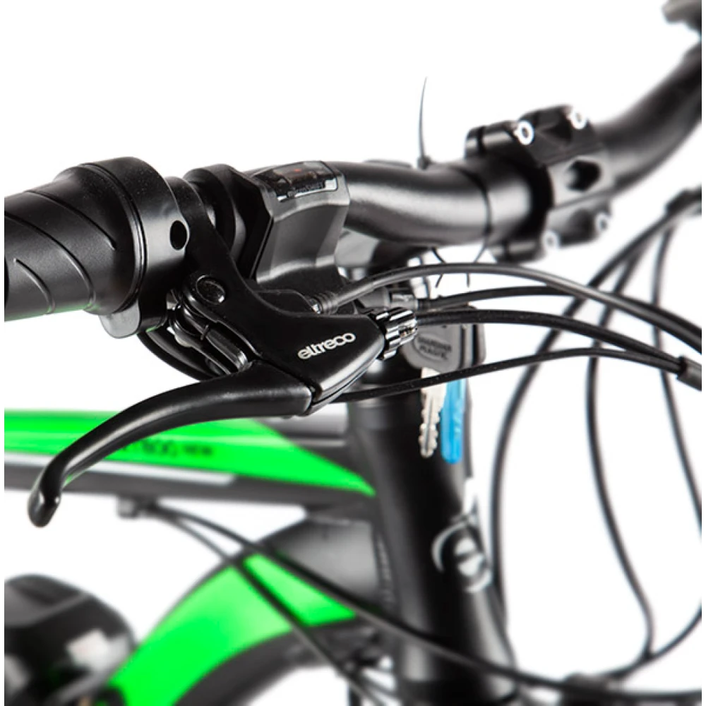 Мощная АКБ емкостью 36В 10Ач гарантирует преодоление расстояния до 50 км. Имея с собой подзарядку путешествие может стать более длительным. Фирменный электромотор Eltreco мощностью 350W в сочетании с надежной ручкой газа, колесами, обутыми во внедорожную резину обеспечат тягу, помогут преодолеть препятствия быстро и без проблем. Скоростные характеристики техники отображаются на жидкокристаллическом дисплее, который всегда перед глазами ездока.