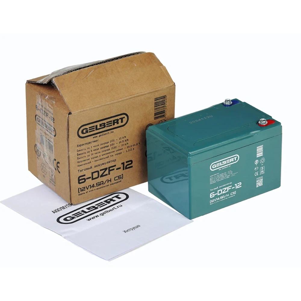 Тяговый аккумулятор Rutrike Gelbert 6-DZF-12 (12V14.5A/H C5) – это современное и надежное решение для грузовых трициклов и складской техники. С напряжением 12 В и ёмкостью 14.5 А·ч по схеме С5, данный аккумулятор гарантирует длительный срок службы и стабильное питание даже при интенсивном циклическом использовании. Его компактные размеры – 151 мм в длину, 100 мм в ширину и 99 мм в высоту, а также вес 4.2 кг позволяют легко интегрировать его в конструкцию различной техники. Продукт, входящий в серию DZF, отличается высокой эффективностью, надежной конструкцией и продуманной эргономикой, что делает его оптимальным выбором для профессионалов, ценящих качество и долговечность. Gelbert 6-DZF-12 успешно справляется с задачами по тяговому питанию, обеспечивая бесперебойную работу оборудования в самых суровых условиях эксплуатации, будь то транспортировка грузов или работа в условиях склада. Благодаря инновационным технологиям производства и строгому контролю качества, этот аккумулятор заслуживает доверия и является надежной опорой для любой техники, требующей стабильного и мощного источника энергии.